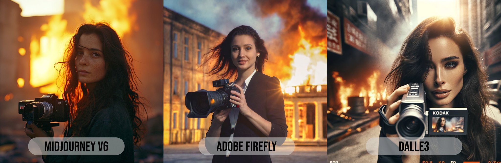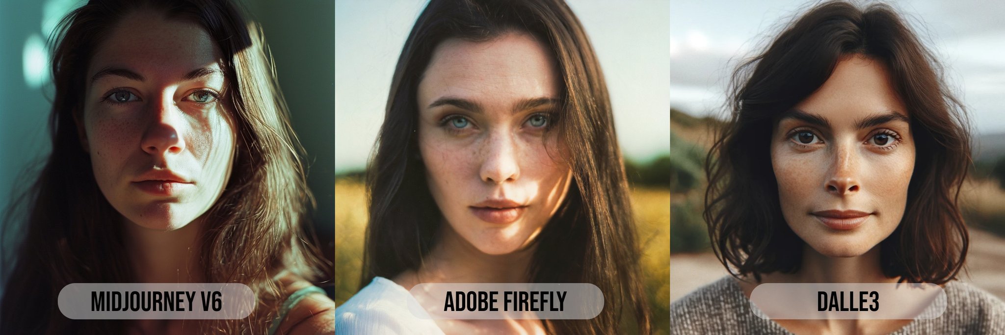 아래는 미드저니 v6를 어도비의 Firefly와 Open AI의 DALL-E와 비교한 이미지입니다
